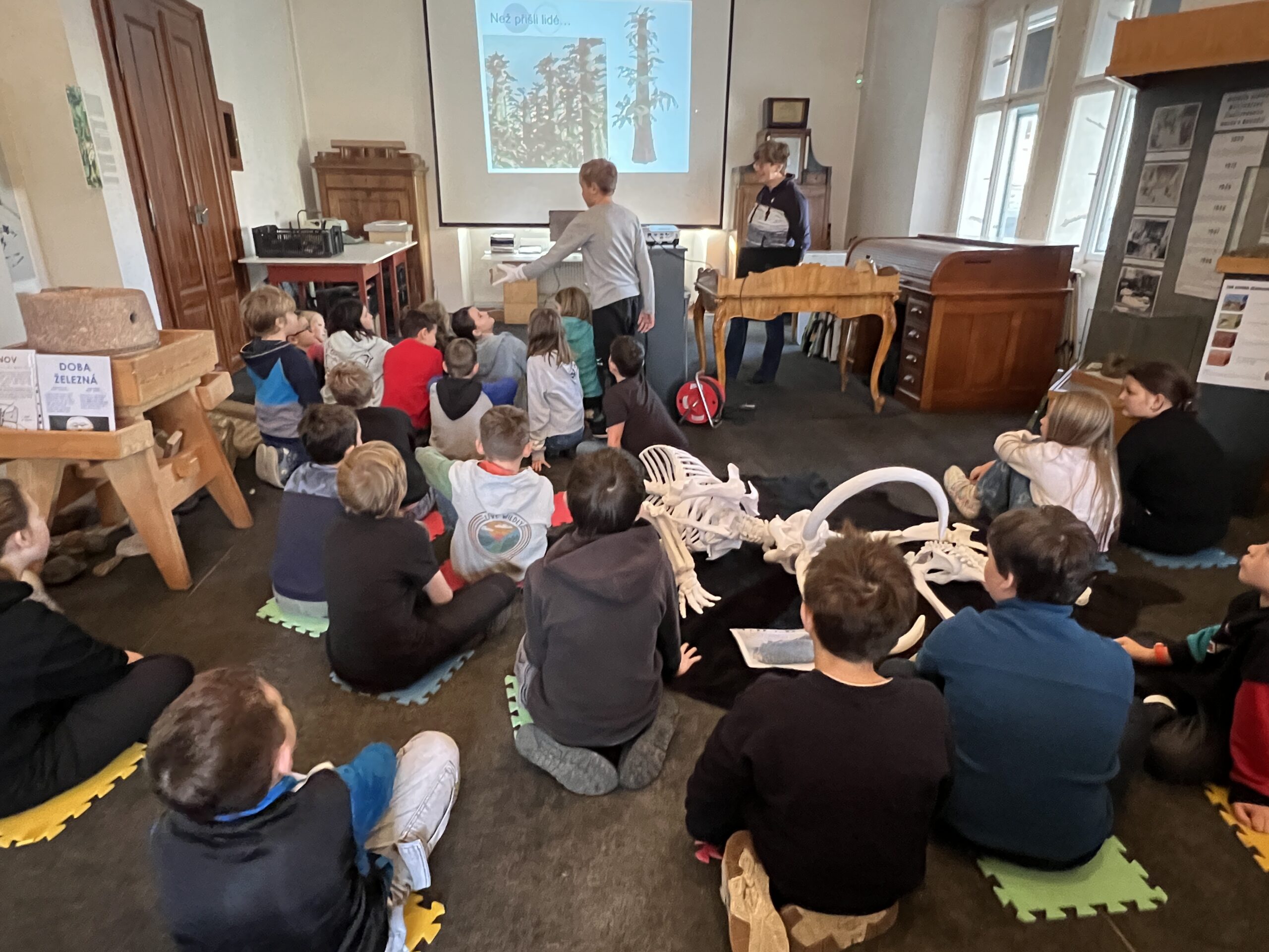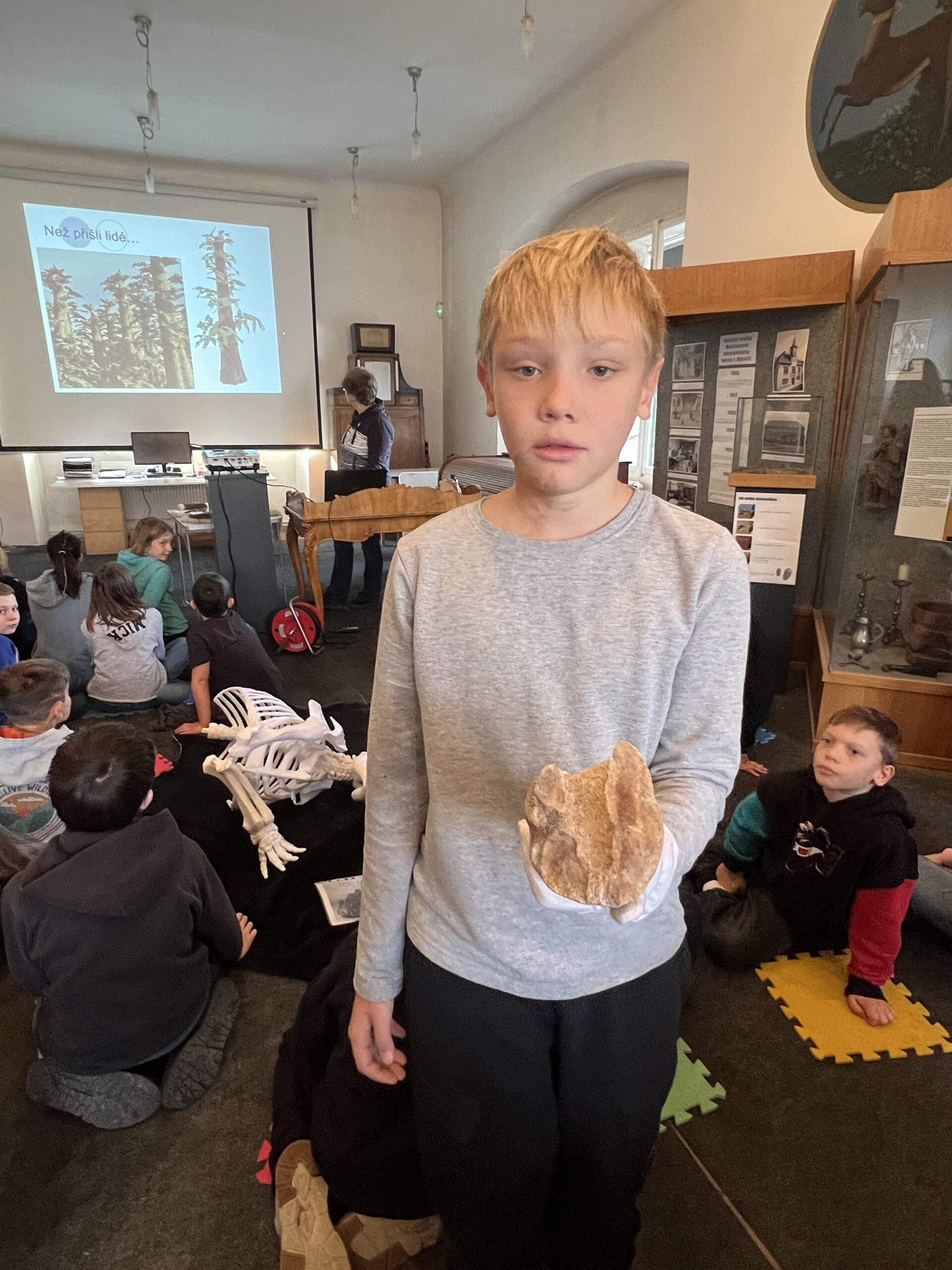 Ve čtvrtek navštívili žáci 4. a 5. ročníku Melicharovo vlastivědné muzeum v Unhošti. Čekala je zde zajímavá expozice věnovaná životu lidí v pravěku. Děti se dozvěděly, jak se naši dávní předci dokázali uživit – od sbírání plodů až po první pokusy o pěstování obilí a chov zvířat.