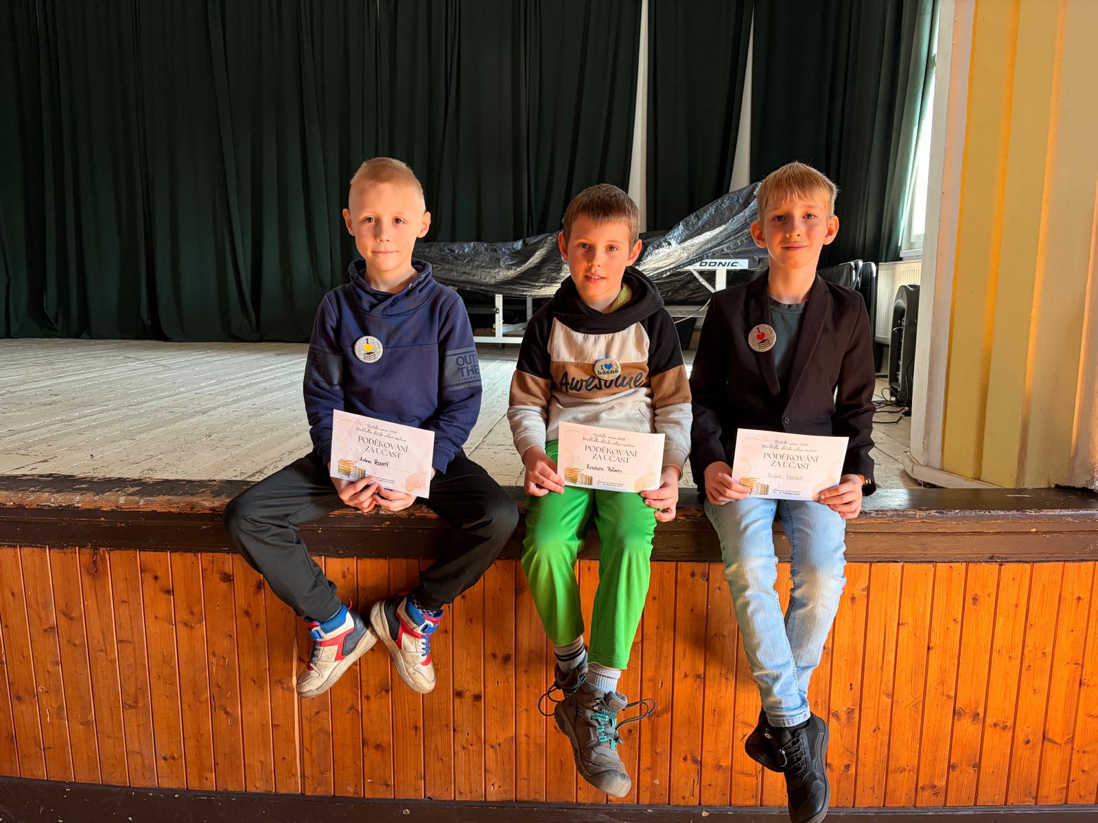 Po úspěchu ve třídních kolech a ve školním kole se Adam Vokatý Herbert Novotný, Kristián Böhm, Karolína Ježková a Aneta Macháčková probojovali do okresního kola.